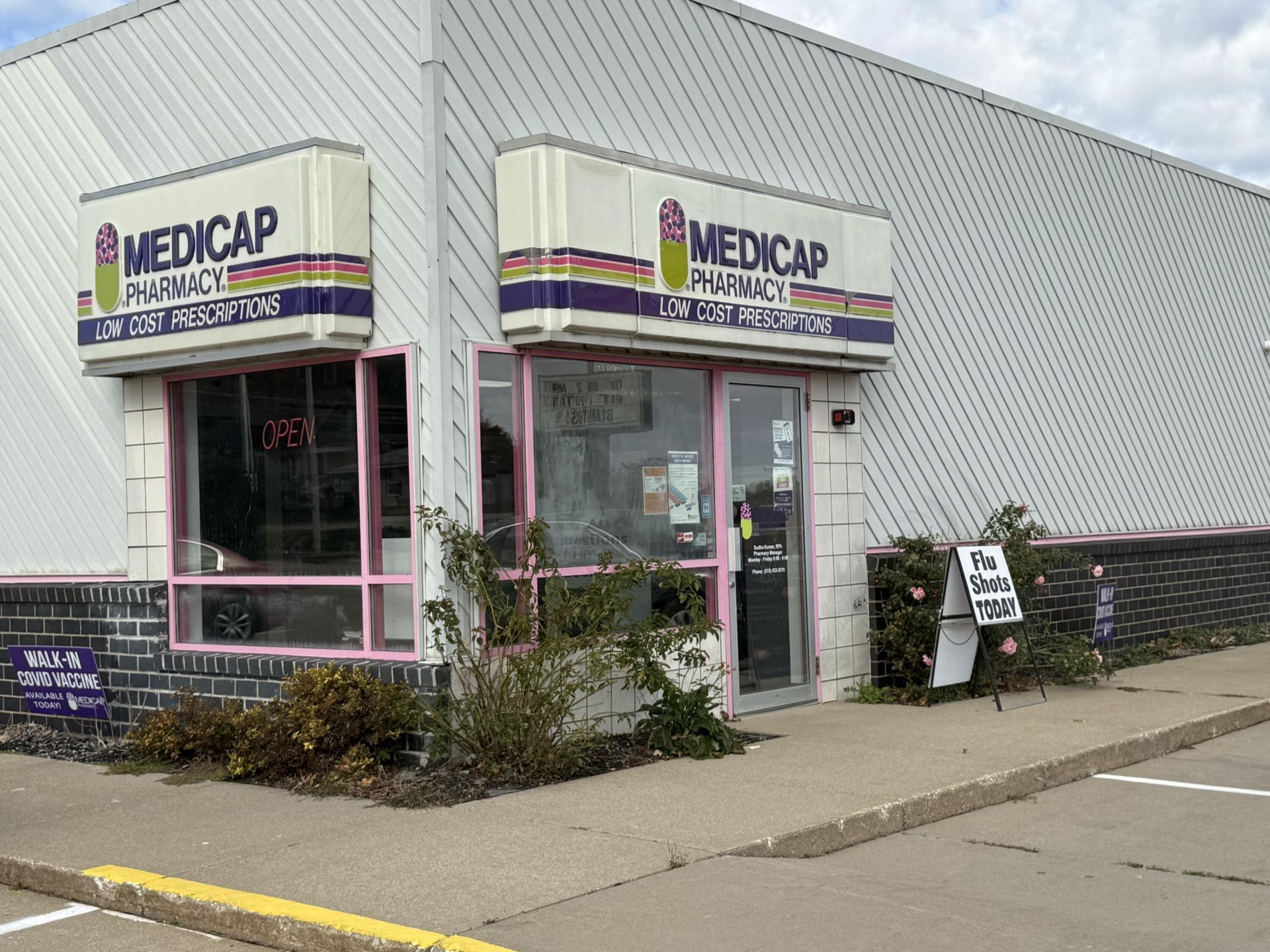 For sale or lease - with option to lease and purchase in March 2027. The former Medicap Pharmacy building has great exposure on the busiest street in town with a large parking lot, electronic sign, and drive-up window on the north side of the building. It would make a great restaurant or convenience store. The current layout has offices with a retail counter. New sewer line in February 2025. Seller offers for sale or lease and is willing to do a contract sale with closing in March 2027 or after, or available for lease.